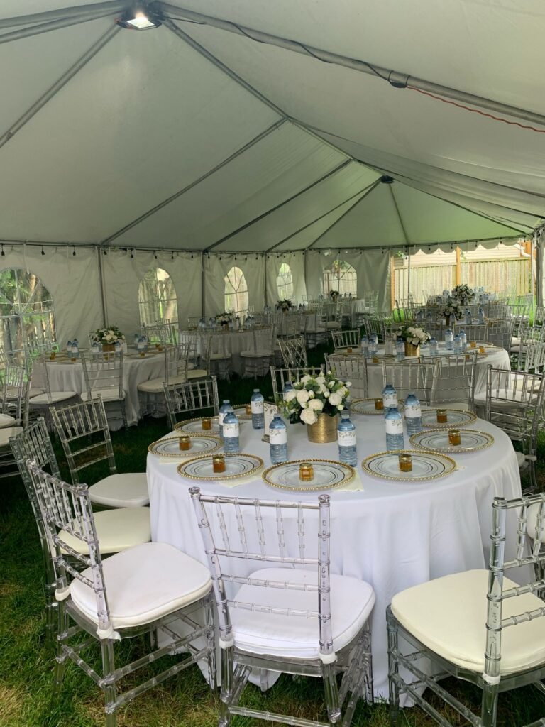We offer a diverse selection of top-quality tents and rental items to suit any occasion. Our tent options include frame tents, pole tents, and clear span tents, all available in a variety of sizes to accommodate your guest list. Beyond tents, we also provide all the essential elements to complete your event space, including tables, chairs, linens, flooring, and lighting. We aim to be your one-stop shop for all your event rental needs.